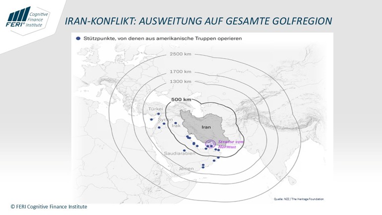 Further escalation poses serious risks: Iran could block the Strait of Hormuz for a longer period, as it has already threatened to do. The Suez Canal would also be at risk from attacks by the Houthi militias controlled by Iran. Both scenarios would mean significant restrictions on global shipping and severe disruptions to global supply chains.